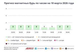 Смотрите в инфографике aif.ru, как будет меняться геомагнитная обстановка в течение дня 18 марта 2026 года.