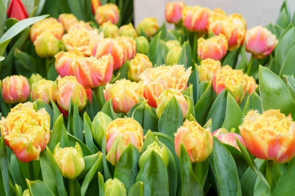 Форма бутона у тюльпанов-долгожителей всегда крупная, правильная, бокаловидная или яйцевидная, без намека на «щуплость». Даже в полуроспуске бутон выглядит плотным и хорошо сформированным. Некоторые сорта выдают свою стойкость необычной текстурой. Например, махровые поздние тюльпаны, которые в народе называют пионовидными, при ближайшем рассмотрении поражают количеством лепестков.