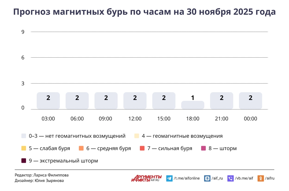 Почасовой прогноз магнитных бурь по московскому времени смотрите в инфографике aif.ru.