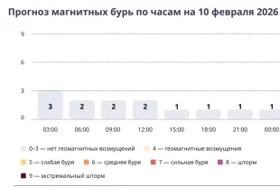 Прогноз магнитных бурь по часам на 10 февраля 2026 года. Инфографика