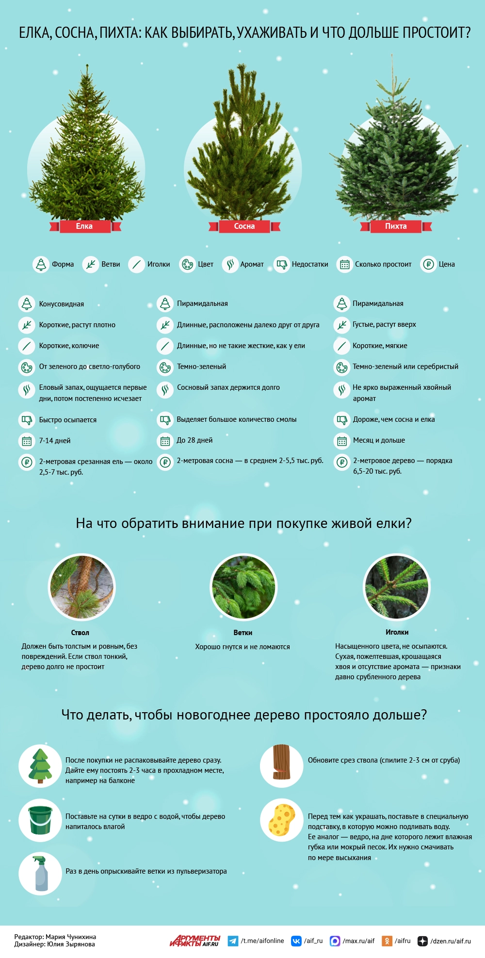 Ель — один из главных символов Нового года, поэтому выбирать её нужно тщательно. В инфографике aif.ru мы собрали полезные сведения о популярных хвойных деревьях, которые россияне предпочитают наряжать на праздник.