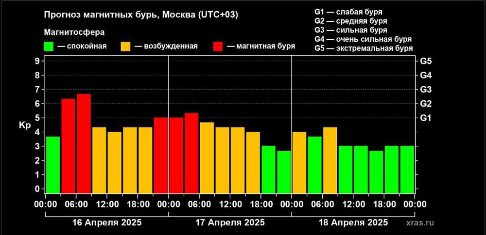 Ещё одна коррекция прогноза касается продолжительности магнитной бури. Первоначально считалось, что она будет в течение всей среды, но теперь эксперты полагают, что буря продлится «до середины завтрашнего дня».