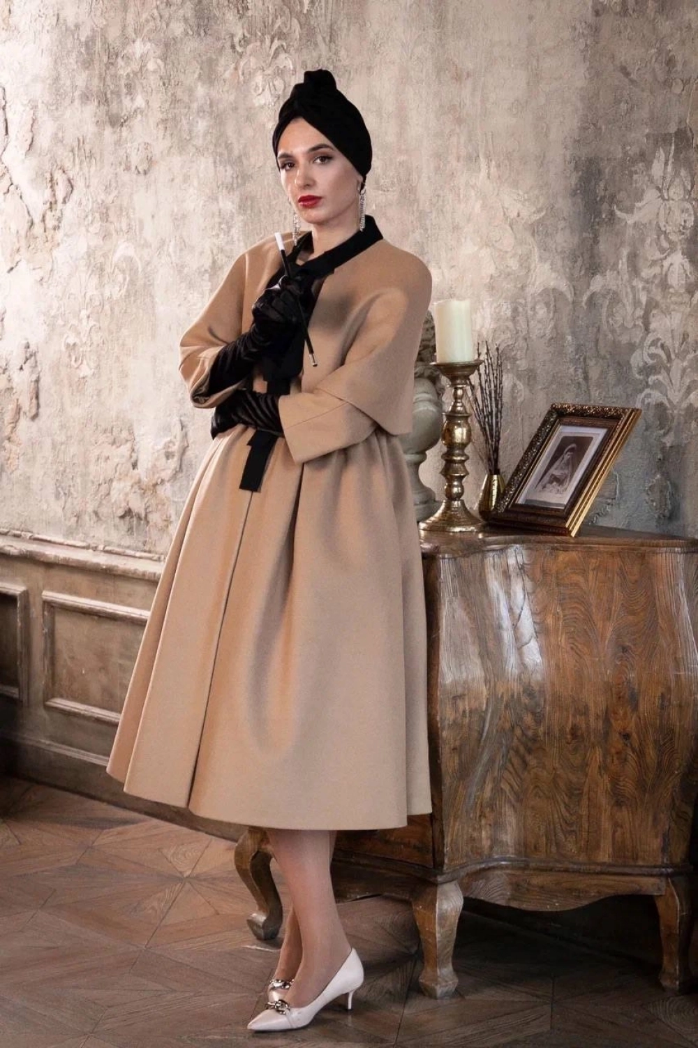 «В обычных мастерских такое не сошьют. Это сложная, кропотливая и долгая работа. Чтобы получить желаемое, надо набраться терпения, — говорит Екатерина. — В Москве я нашла только два ателье, которые могут воссоздать силуэт моделей 50- 60-х. Причем от кутюр. Я сейчас не ношу масс-маркет. Весь сегодняшний мой гардероб — это подиумные варианты».