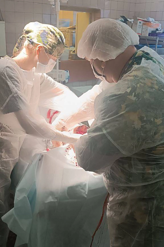 Но некоторые операции очень сложные. Однажды поступил пациент с минно-взрывным ранением. В транспорт прилетел снаряд, и бойцу оторвало ноги. С виду настоящий русский богатырь, но очень тяжелый. В операционной над ним работало шестеро только врачей — по два травматолога с каждой ногой, два анестезиолога. Не говоря уже о среднем медицинском персонале — медсестры, санитары. В операционной было тесно от медиков, которые боролись за жизнь бойца. Необходимо было как можно быстрее добиться стабилизации состояния пациента, чтобы эвакуировать его в специализированный центр, где ему сделают протезы и окажут более специфичную помощь.