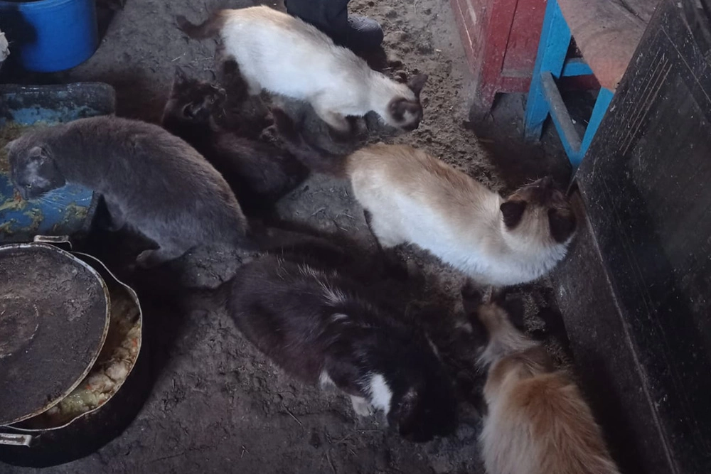 Сейчас на попечении Сергея и Ольги находятся 28 кошек и 7 собак. Кого-то они подобрали на улице, а кого-то им отдали уезжающие местные жители.
