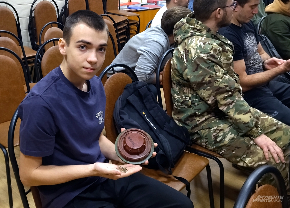 Всё указывает на то, что перед нами профессионал, знающий предмет не только в теории. Вопросы начинают сыпаться один за другим, вдруг в зале раздаётся тикающий звук: кто-то из учеников активировал макет взрывателя, который передали по рядам.
