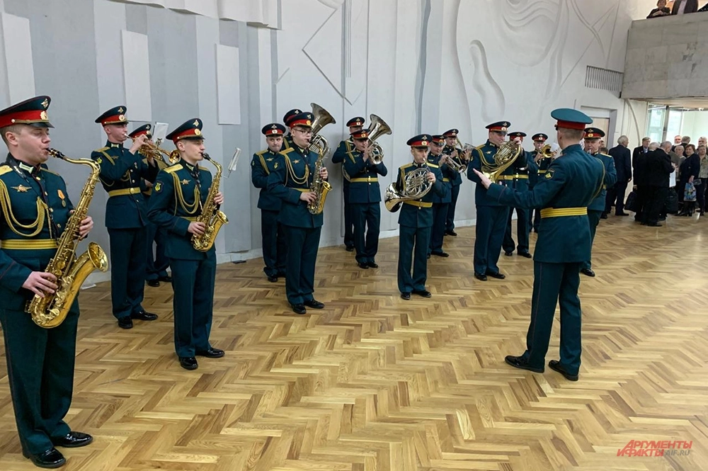 Всех приглашенных на концерт в фойе клуба «Москвич» встречали суворовцы в парадной форме. Пока гости собирались, их приветствовал военный духовой оркестр. Трубачи исполняли военные марши, песни военных лет, советскую музыкальную классику.