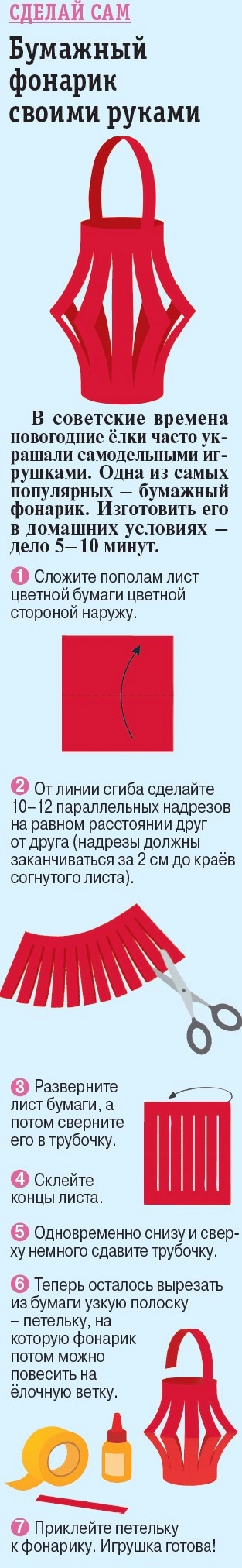 В советские времена новогодние елки часто украшали самодельными игрушками. Одна из самых популярных — бумажный фонарик. Сделать его — дело 5-10 минут.