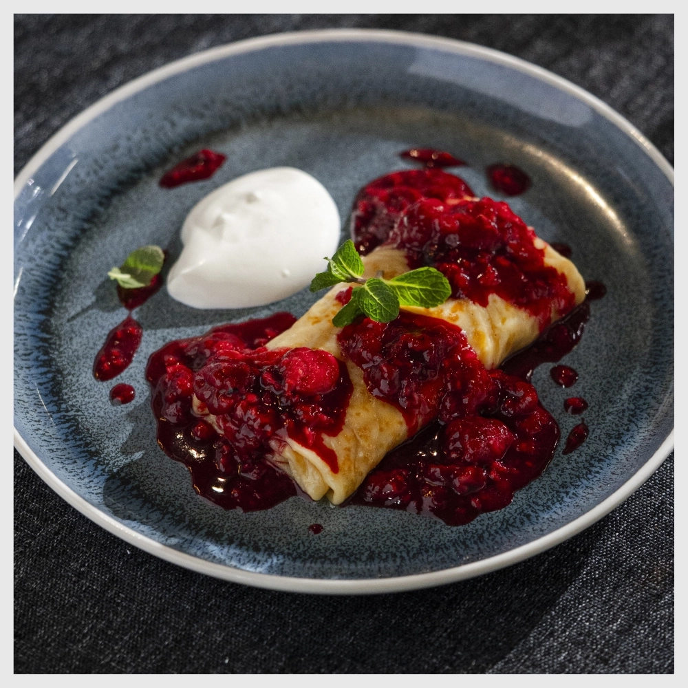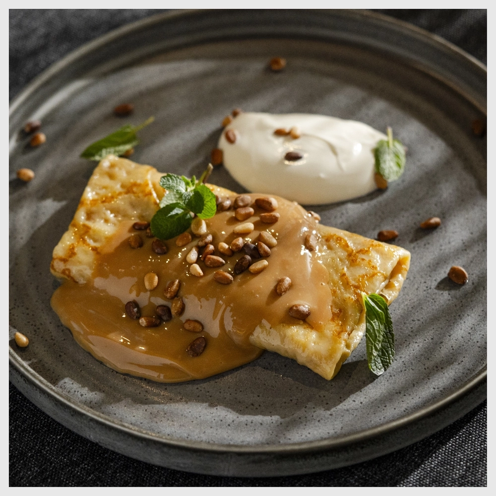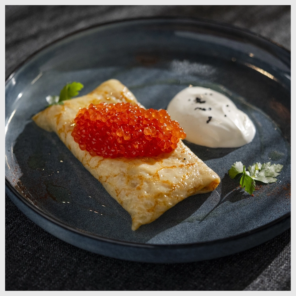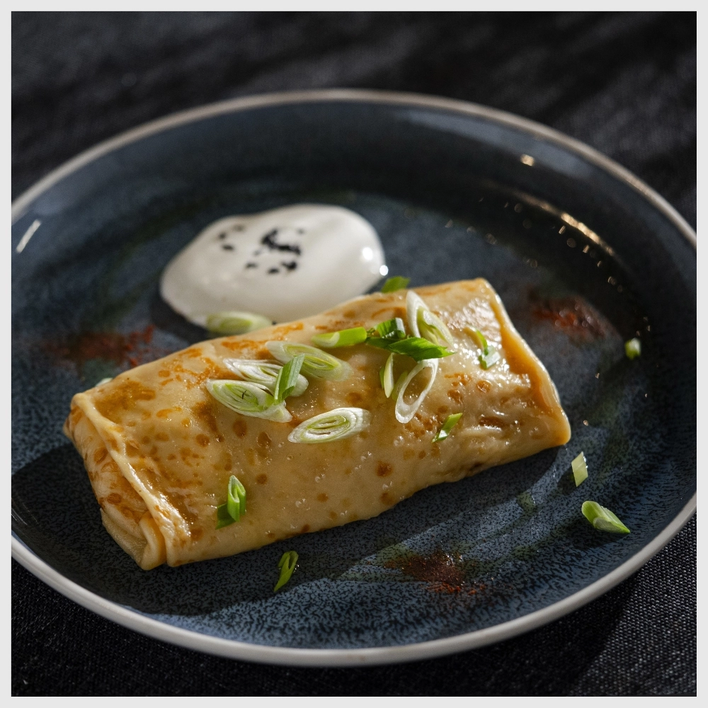 Важно было добиться универсальности: одно тесто должно подходить и для сладких, и для сытных начинок, легко сворачиваться и держать форму. В меню есть и сковородочные блины, и большие, диаметром до 40 сантиметров — их заворачивают почти как шаурму.