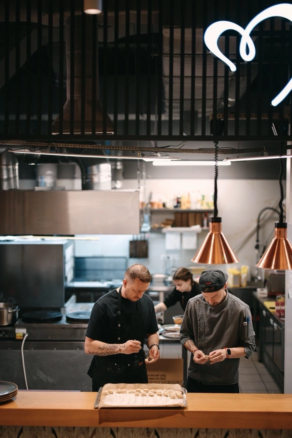 Сейчас в команде пять человек: повара и помощники. Стабильный коллектив сформировался спустя несколько месяцев поисков и текучки. В начале работы Степан познакомился с бренд-шефом одного из московских ресторанов, который помог поставить меню.