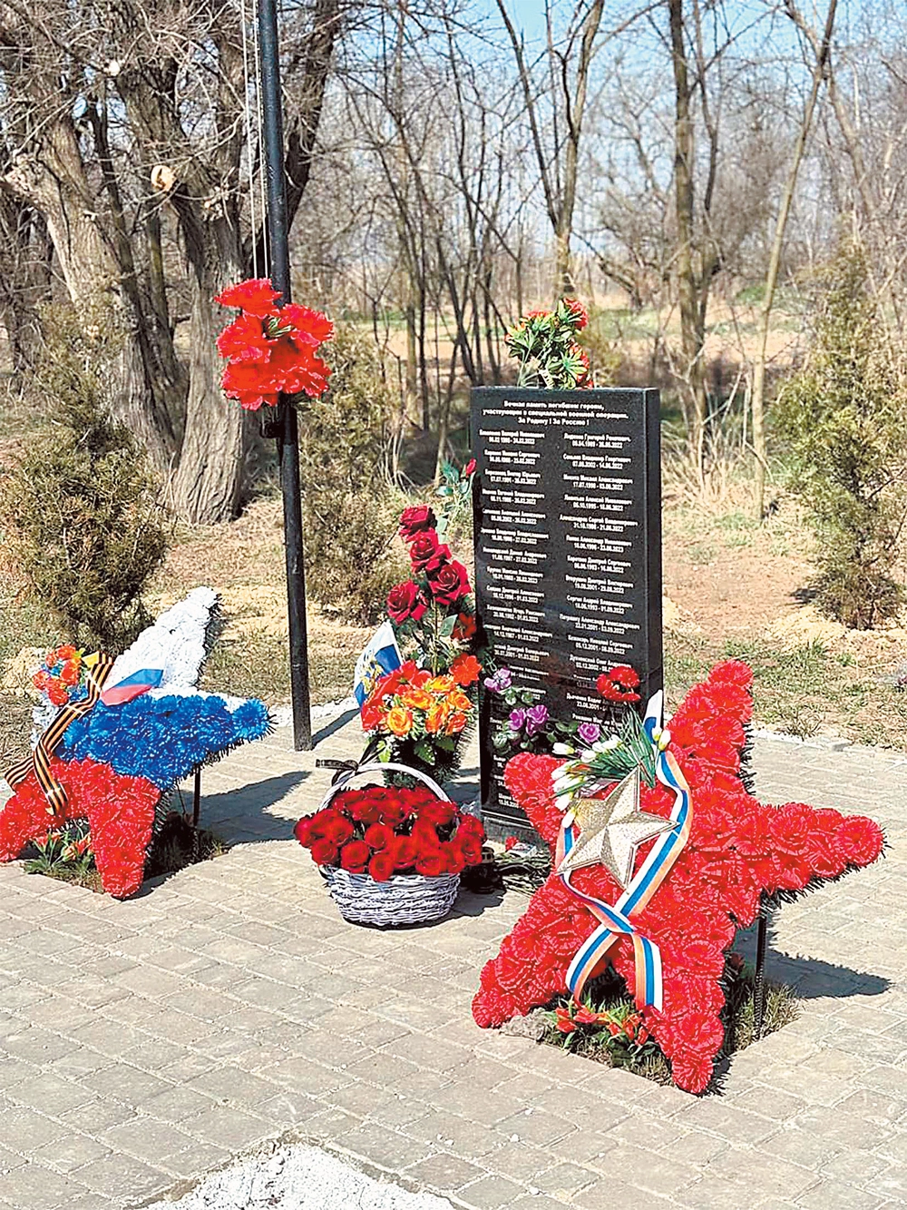 Первый и пока единственный мемориал на освобождённых землях России, на котором увековечены имена героев СВО, установила своими силами жена офицера из Феодосии Елена Темирханова. После того как она своими глазами увидела изрубленные снарядами деревья и разорванную взрывами боевую технику, решила, что сделает всё возможное, чтобы на месте первого боя крымских десантников стоял монумент погибшим воинам.