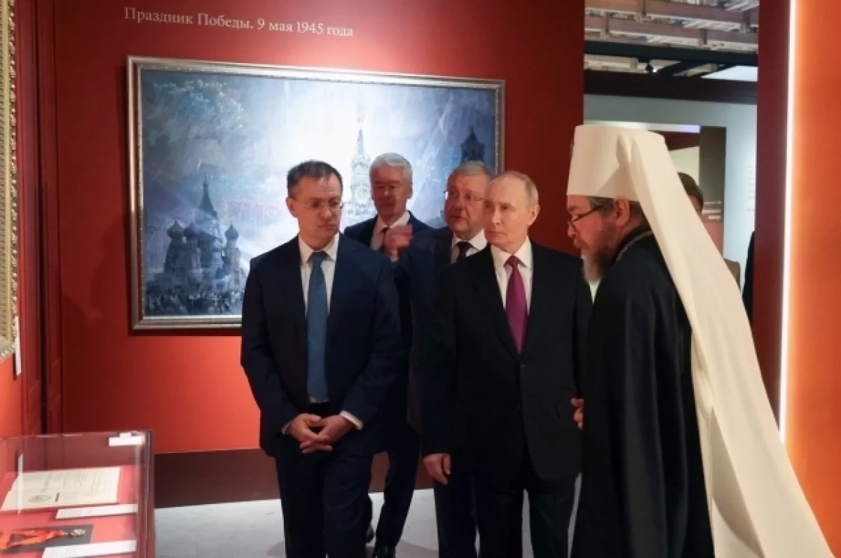 Президент России Владимир Путин посетил выставку-форум «Православная Русь — к Дню народного единства», где ему показали историческое Знамя Победы, которое было поднято над Рейхстагом в 1945 году, а также другие экспонаты, связанные с ВОВ.