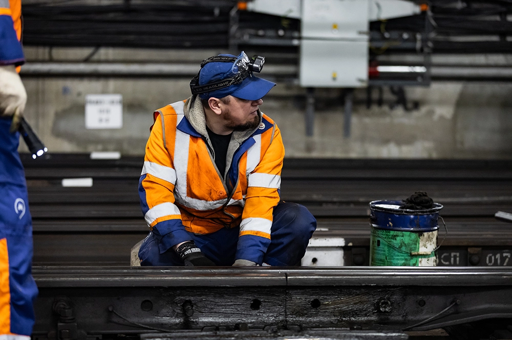 «Каждую ночь в тоннель спускаются более 20 работников нашей службы. Это обходчики, монтеры, тоннельные рабочие, дренажники. За короткое ночное окно, а это около двух часов, мы должны осмотреть каждый метр пути — ничто без внимания не остается», — рассказывает Сергей Васягин, помощник дорожного мастера.