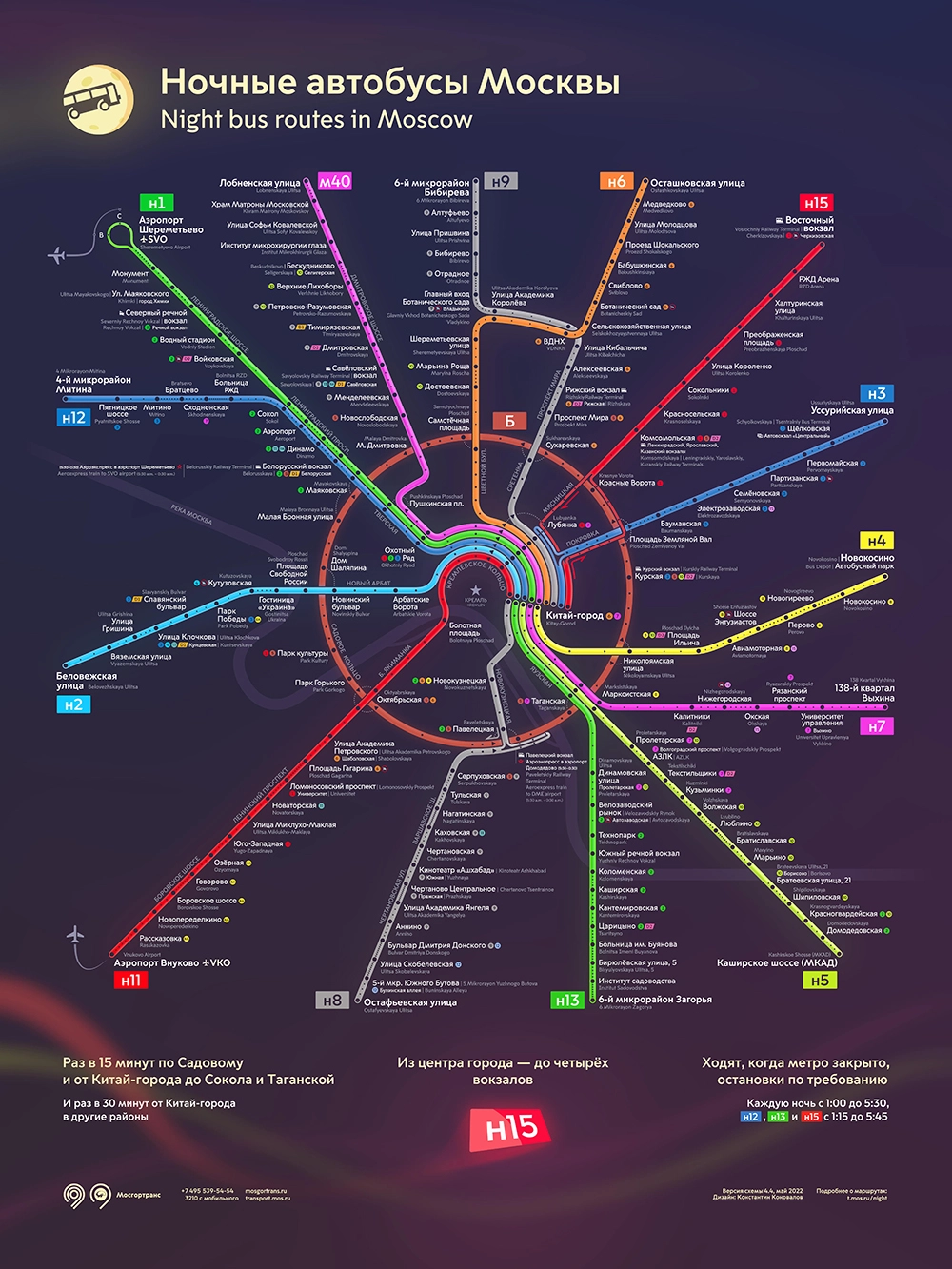 Для тех, кому нужно добраться куда-то по ночной Москве, работает сеть автобусов-экспрессов, которые идут от Китай-города до разных районов города. Ознакомиться со схемой их движения можно на сайте Мосгортранса.
