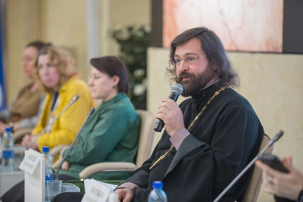 Опытом организации добровольческих экспедиций поделился руководитель проекта «Общее Дело. Возрождение деревянных храмов Севера» протоиерей Алексей Яковлев.