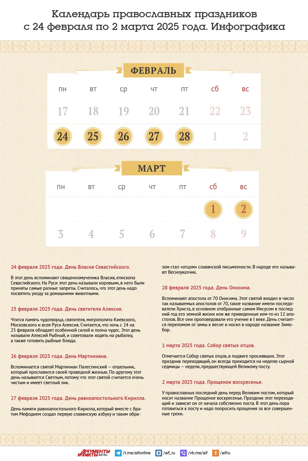 Календарь православных праздников с 24 февраля по 2 марта 2025 года