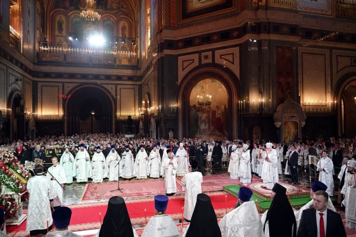 Праздничное Пасхальное богослужение в храме Христа Спасителя в Москве