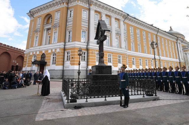 Патриарх сказал, что этот крест был первым памятником на территории Кремля, который был уничтожен после революции и его воссоздание является «актом восстановления исторической справедливости».