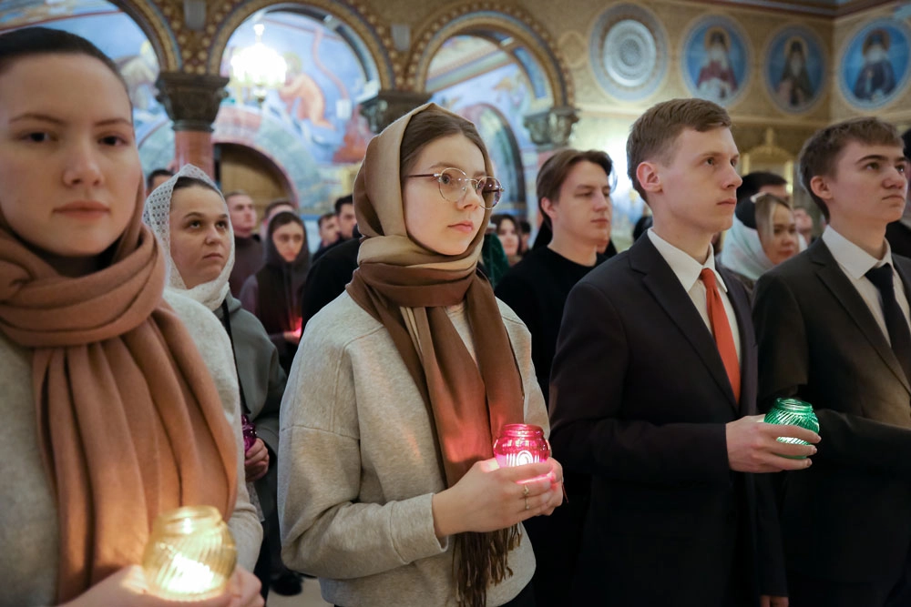 На этом крупнейшем молодежном молебне в руках у каждого горела свеча, так что сотни огоньков озарили украшенные великолепной росписью стены храма.