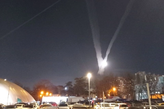 «Этот след после пролета самолетов долго сохраняется, не разрушается. Пролетели два самолета в каких-то перпендикулярных направлениях, и образовалось что-то похожее (на латинскую букву V или X – ред.)», — сказал Ильин в комментарии aif.ru.