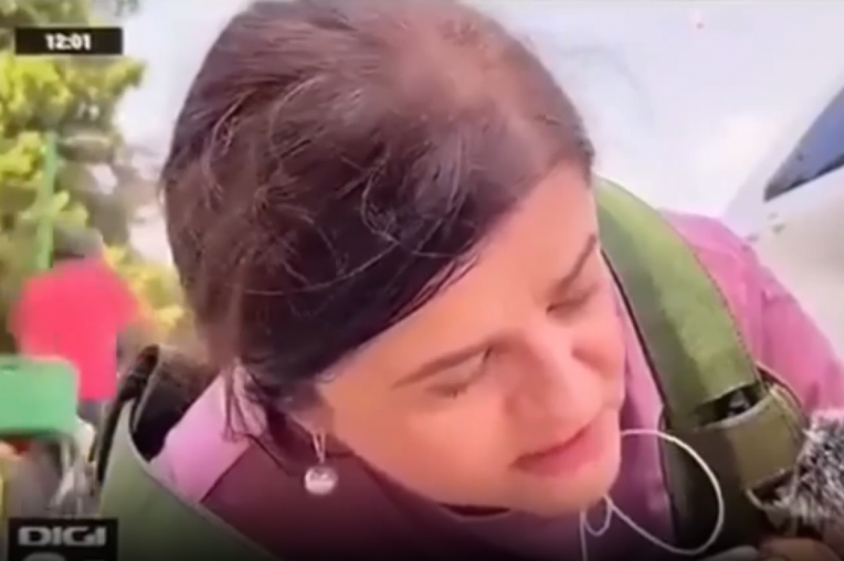 Журналистка из Румынии во время прямого эфира спасалась от выдуманной атаки на Израиль, пока рядом спокойно ходили люди. Сюжет показали в эфире телеканала DIGI24.