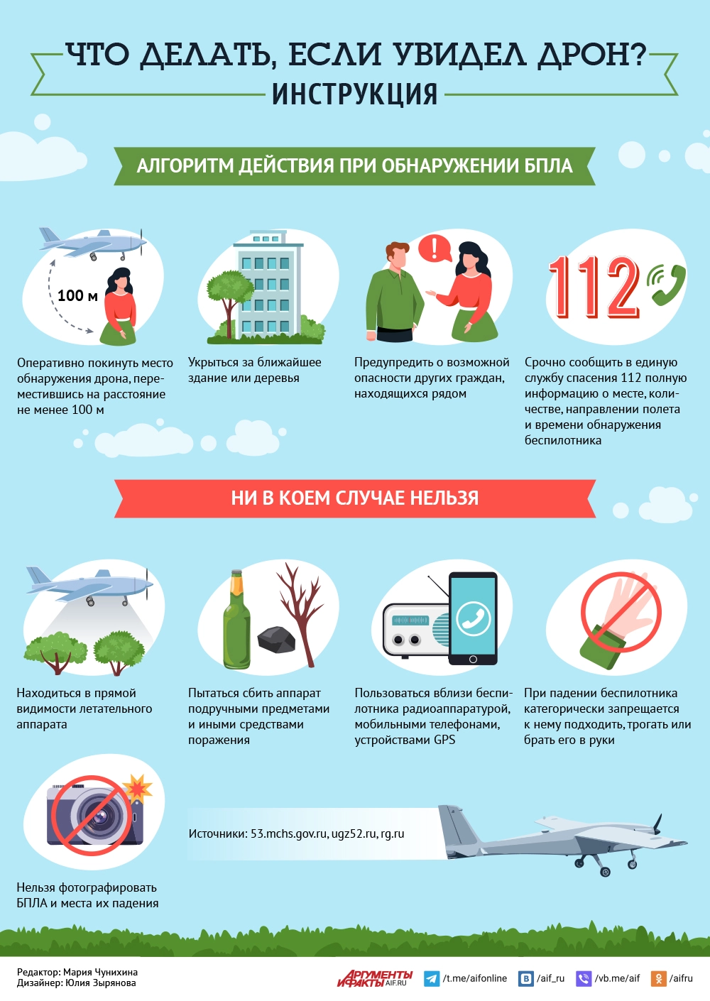 После падения БПЛА оставайтесь в укрытии, не спешите из него выходить. Осмотритесь и прислушайтесь, возможен прилет второго или третьего дрона. Наберите 112 и сообщите оперативному диспетчеру, где вы находитесь и есть ли рядом с вами пострадавшие (назовите их примерный возраст и пол).