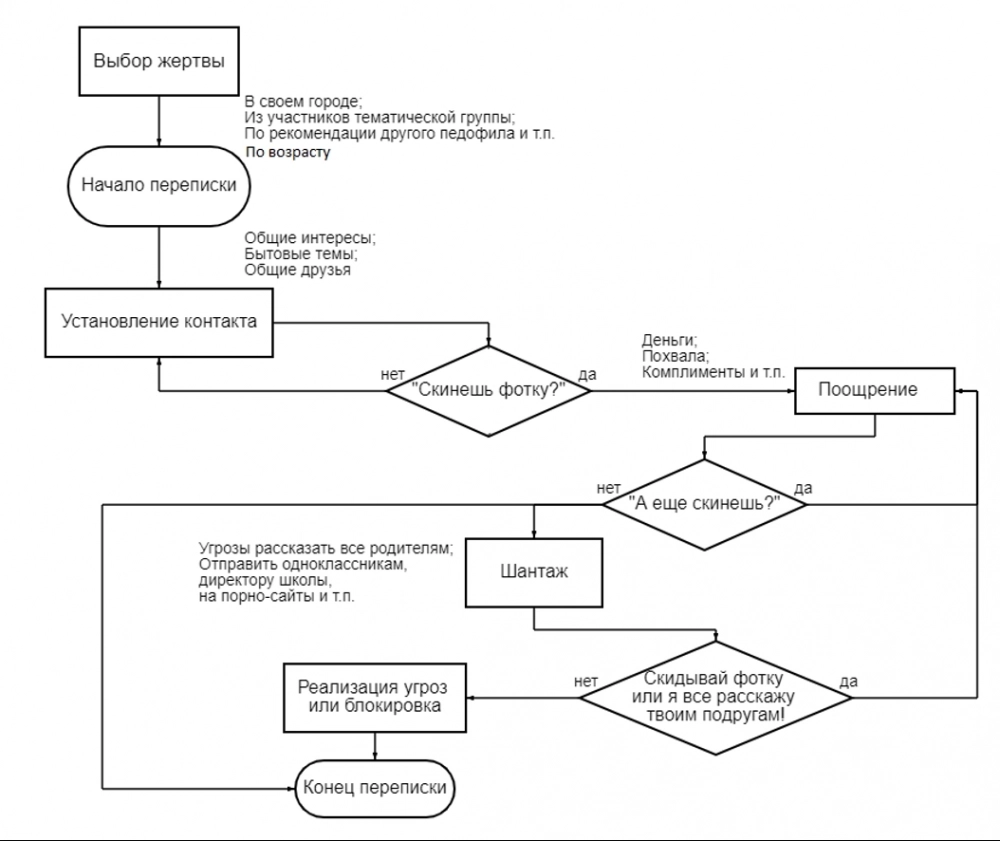 Он знает, как познакомиться с ребенком, втереться к нему в доверие, подружиться, приманить небольшим подарком, а затем — добиться фото и видео. Может быть, даже встречи. А потом уговорить ребенка сохранить «дружбу» в секрете и никому об этом не рассказывать. Манипулятор действует по отработанной схеме.