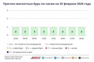 Смотрите в инфографике aif.ru, как будет меняться геомагнитная обстановка в течение дня 25 февраля 2026 года.