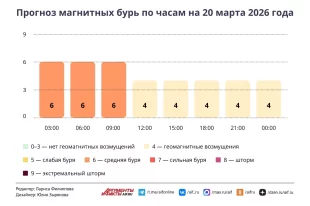 Смотрите в инфографике aif.ru, как будет меняться геомагнитная обстановка в течение дня 20 марта 2026 года.
