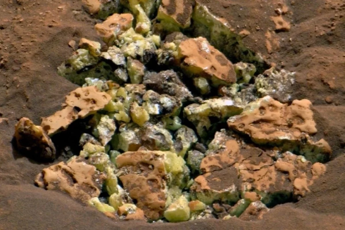 В мае 2024 года тяжёлый марсоход совершал очередной манёвр в проливе Гедиз-Валлис (предположительно, это высохшее русло древней реки). Проезжая по одному из непримечательных обломков породы, аппарат раздавил его. Камень раскололся, и внутри обнаружились ярко-жёлтые кристаллы. Анализ показал, что это чистая сера.