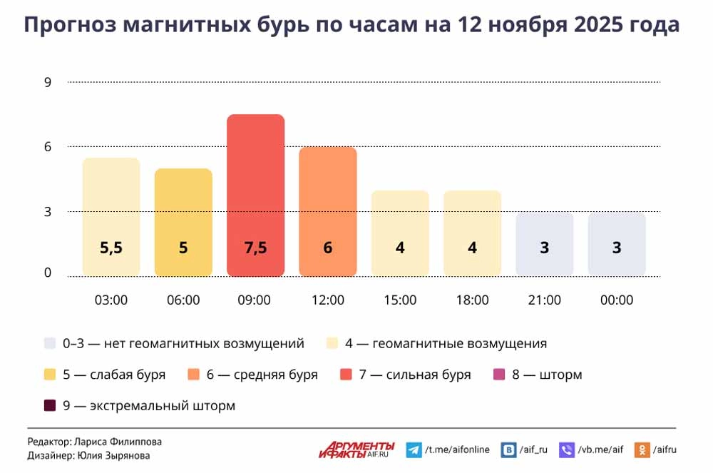 Почасовой прогноз магнитных бурь по московскому времени смотрите в инфографике aif.ru.