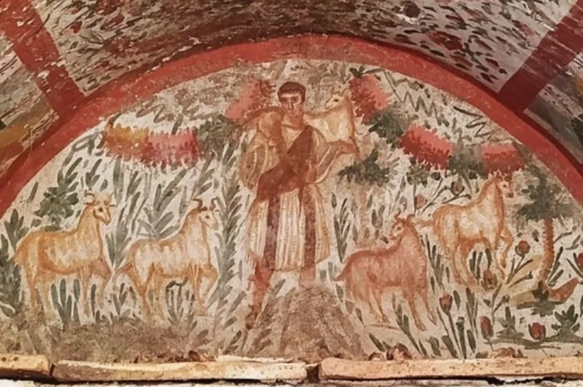 «Картина III века показывает Иисуса, идущего по полю, он окружен козлами. Он появляется как молодой мужчина в простой тунике, с козлом, накинутым на плечи. Фреска подтверждает, что ранние христиане использовали те же образы и титулы для Иисуса, что и в Новом Завете, включая мотив "Добрый Пастырь", упомянутый у Иоанна 10:11: "Я – добрый пастырь"», – говорится в материале.