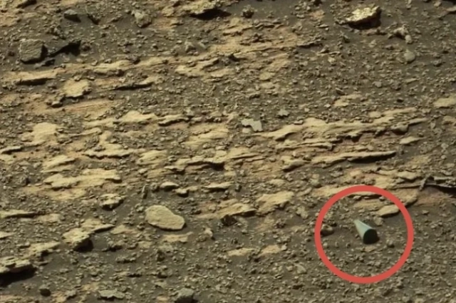 Это был небольшой предмет длиной около 20 сантиметров. Форма — то ли цилиндр, то конус. На снимке хорошо виден плоский торец. Самое главное, что вызывает удивление, — это отражающая способность предмета. Его поверхность блестит на солнце, что абсолютно нетипично для камней, которыми усыпан марсианский пейзаж.