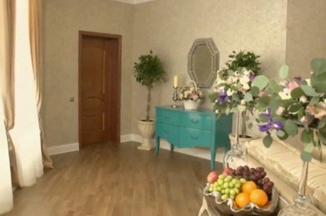 В квартире, которую Долина сначала продала Лурье, а затем вернула себе, есть овальный холл с колоннами и массивными люстрами, спальни с гардеробными, отдельный санузел для детской, ванная комната для взрослых с декоративным панно и объединенная с кухней гостиная.