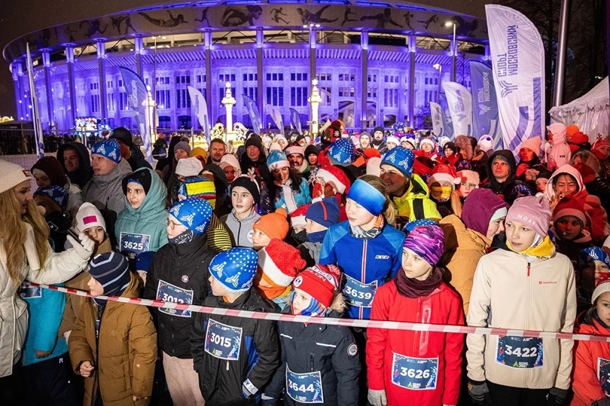 В ночь с 31 декабря на 1 января в Лужниках прошёл новогодний забег. Около 22:00 на площадке возле главной футбольной арены собрались тысячи москвичей вместе с детьми. Для самых маленьких всю ночь работала детская зона с веселыми аниматорами. А для тех, кто постарше — большие, обогреваемые шатры с чаем и полезными сладостями.