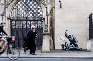 Накануне уличный художник нарисовал граффити на стене Королевского суда в британской столице.