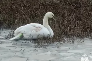 Прохожие спасли примерзшего к водоему лебедя