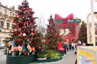 Выставка дизайнерских новогодних елей возле ЦУМа