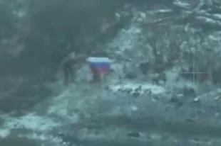 В небе над Киевом заметили дрон с российским флагом.