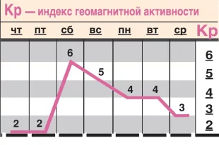 В воскресенье, понедельник и среду магнитные бури (Кр 5–6), во вторник — магнитосфера возмущённая (Кр 4). У кого есть болезни сердца и сосудов, лучше почти всю неделю строжайшим образом соблюдать назначения врача.