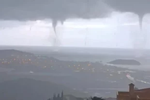 Жители испанского Масаррона сняли на видео выход из воды смерчей и заявили, что это было похоже на конец света.