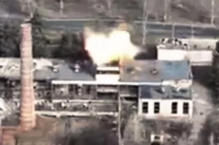Уничтожение построек с засевшими в них украинскими боевиками под Константиновкой сняли с воздуха.
