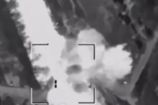 Уничтожение ракетой переправы ВСУ под Красным Лиманом сняли с дрона.