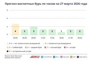 Смотрите в инфографике aif.ru, как будет меняться геомагнитная обстановка в течение дня 27 марта 2026 года.