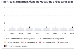 Прогноз магнитных бурь по часам на 3 февраля 2026 года. Инфографика
