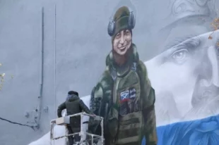 В центре Донецка появился мурал с цитатой Путина