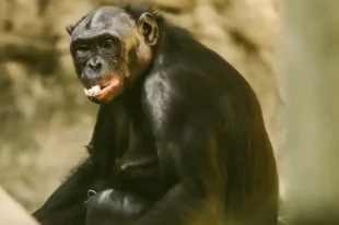 Обезьяна Бонобо из США разбила стекло камнем в зоопарке, набросившись на посетителей, ей не понравились кривляющиеся люди.