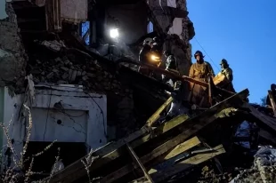 МЧС опубликовало кадры обрушения подъезда в Сызрани после атаки БПЛА. Под завалами могут находиться два человека, включая ребенка.