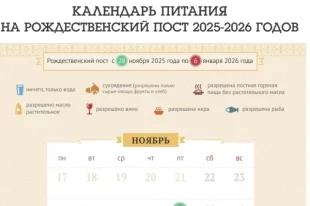 Календарь питания на Рождественский пост 2025-2026 годов