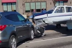 Частный самолёт Beechcraft Bonanza G-36 экстренно приземлился прямо на улице в городе Гейнсвилл в США и врезался в машины.
